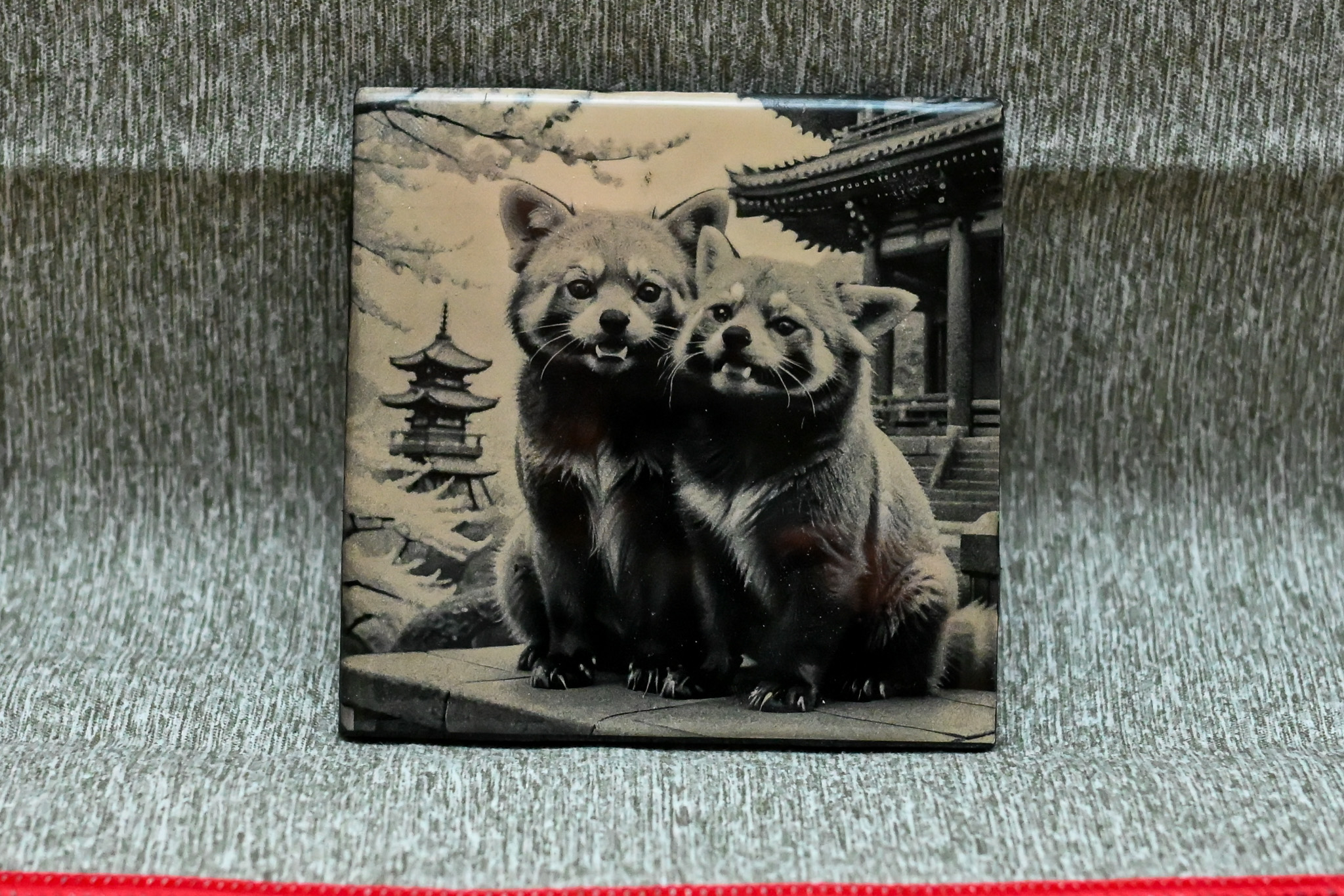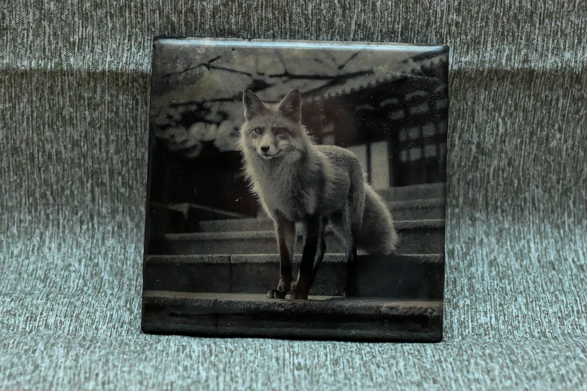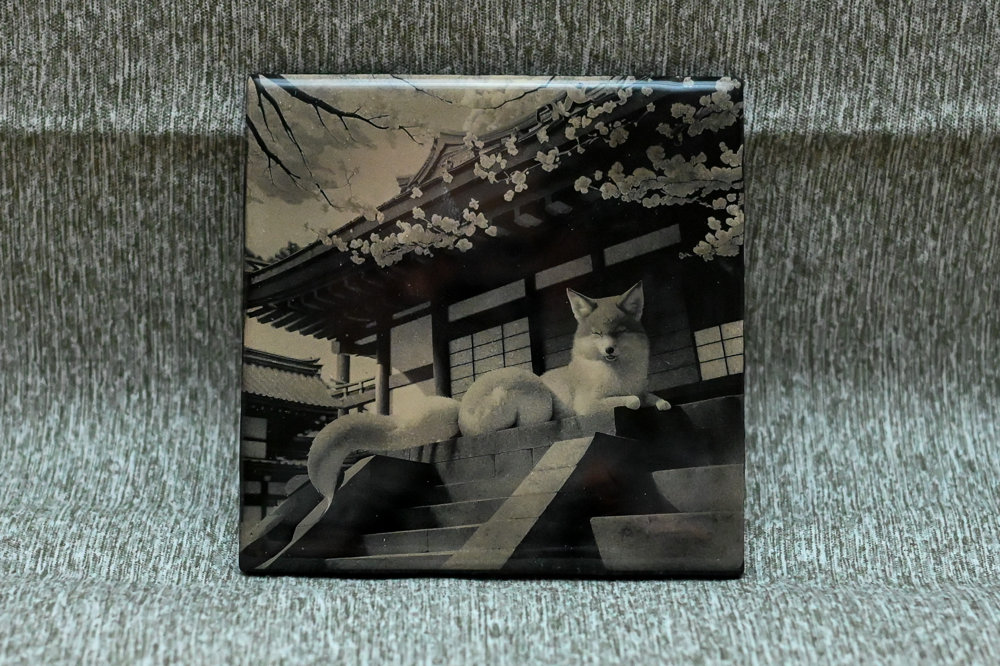 After selecting the image, we convert it into black and white while adding subtle lighting enhancements to ensure the final result complements the tile medium. Using advanced laser technology, we delicately engrave your image by removing layers of black paint to reveal the intricate details of your provided photograph. This process captures the essence of your image with precision and clarity.