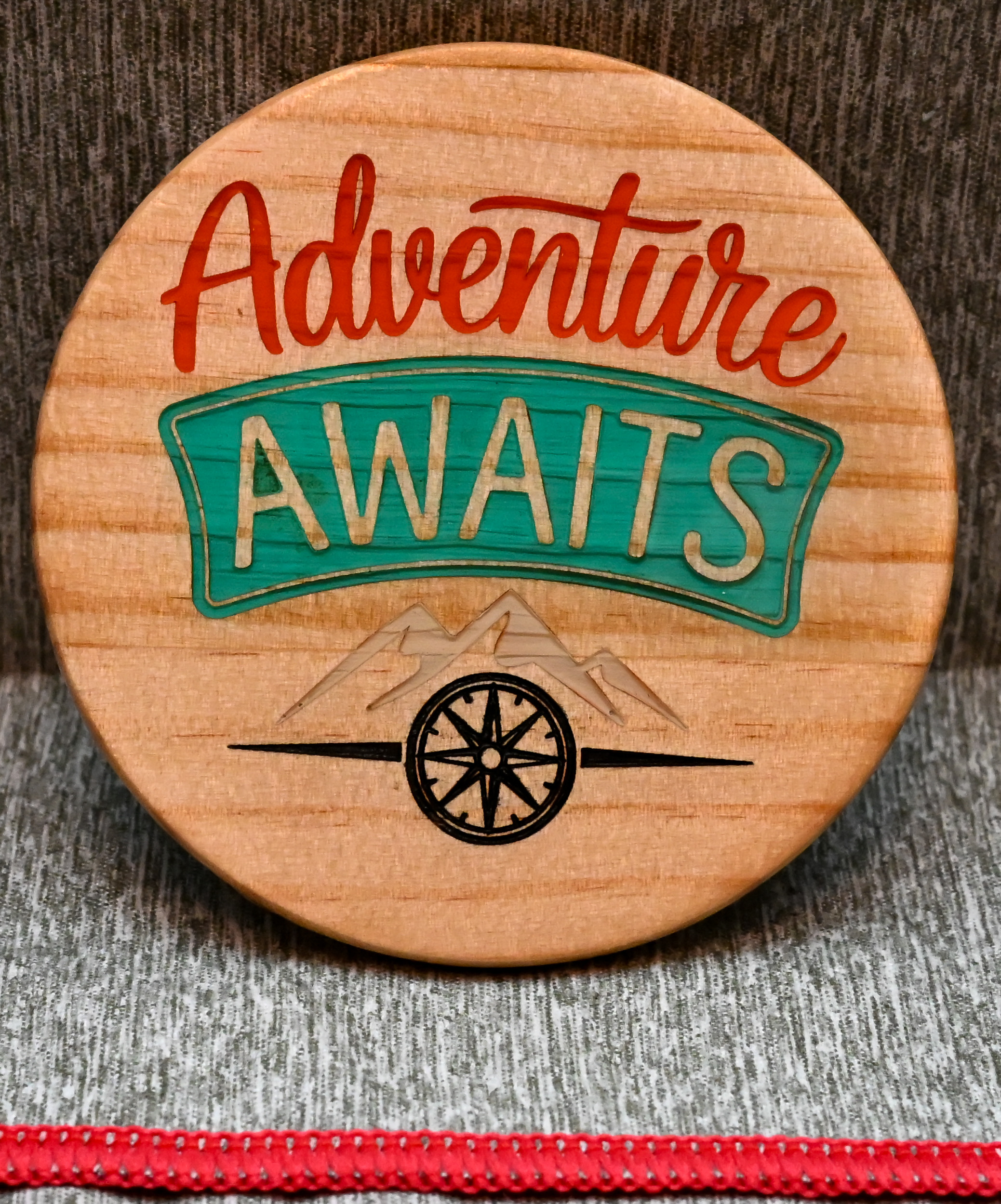 Discover a stunning blend of rustic charm and modern craftsmanship with our round wood coaster laser engraved with “Adventure Awaits.” Each piece is meticulously hand-painted to complement the intricate engraving, creating a beautiful work of art that adds a sense of wanderlust to your table setting.
